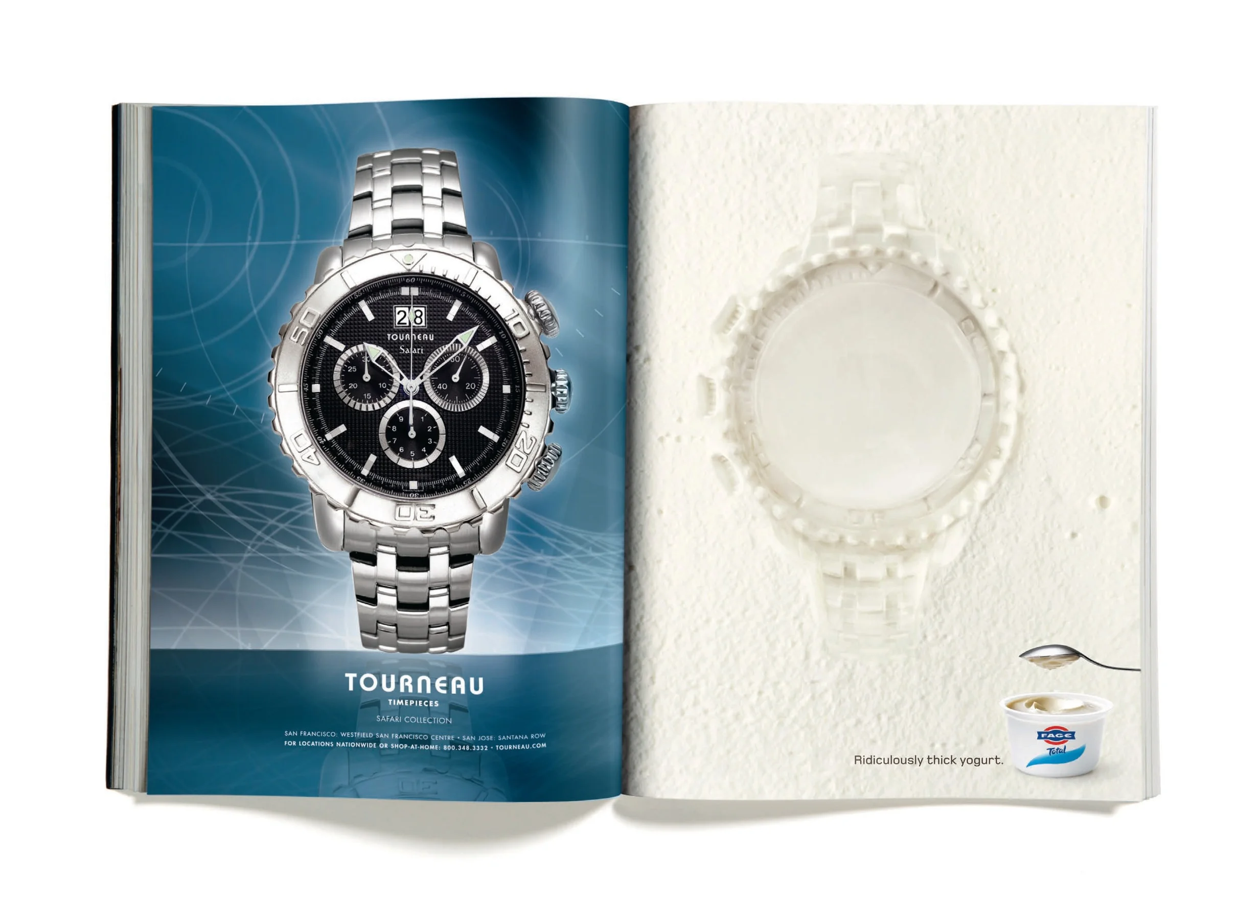 Fage had a tiny budget but a lot of guts. They not only agreed to run spreads, but to give away half the spread to another brand.